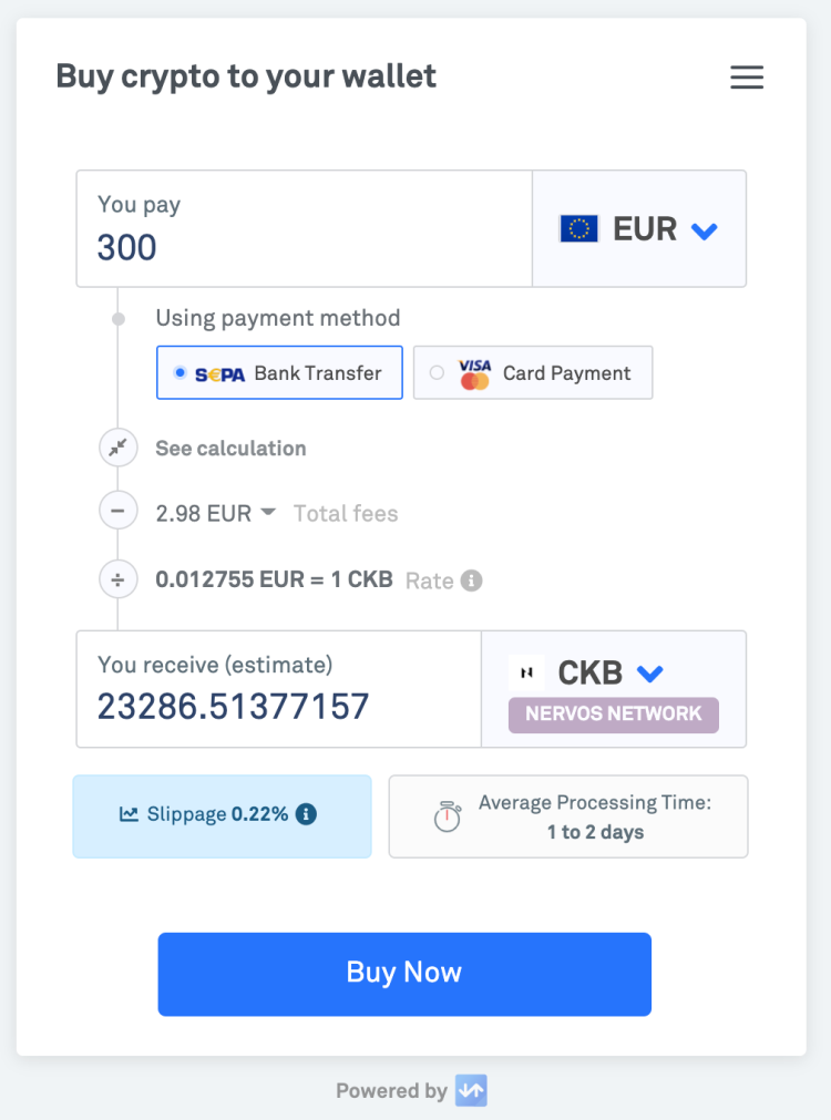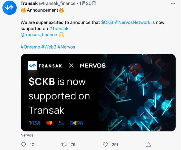 Transak 已支持 CKB,用户可以使用银行卡一键购买 CKB -