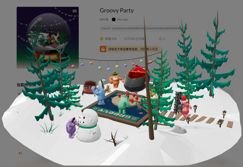 上周五晚,Nervape 给社区里空投了一个很酷的 NFT —— Groovy Party。 (https://explorer.mibao.net/nft/17d7016c-04f7-4f51-b2ba-12f400a6228d),持有 Nervape Groovy 系列的一套 NFT 可以到 nervape.com 上领取一个新的 NFT。这个 NFT 会作为之后游戏的入场券用到。