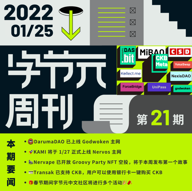 社区的朋友们,大家好!我是字节君,又到了每周给大家汇报工作的时候了。不知不觉,你们与字节元周刊已一起来到了第 21 期,本期过后将迎来新春佳节,农历的年三十过后,我们就算是彻底告别了 2021 年。在这辞旧迎新的这期周刊发布前,字节君先给各位读者朋友们拜个早年,祝大家新春愉快。