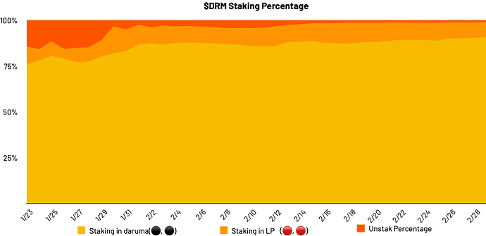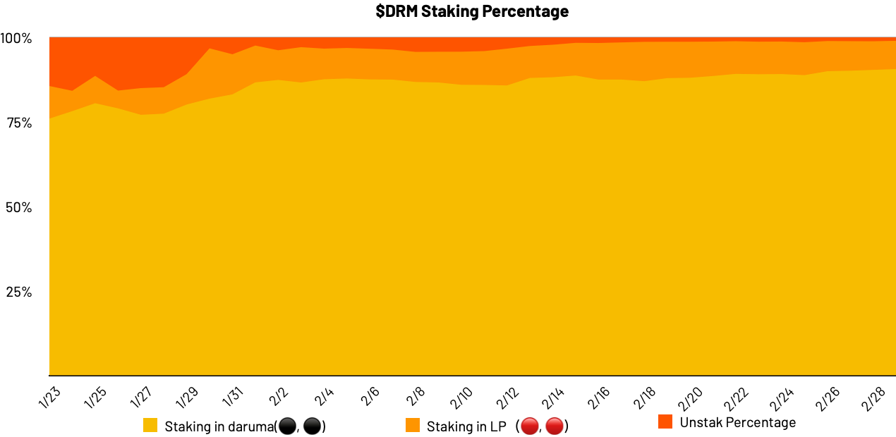 - 有 90.57% 的 DRM 被质押到 Daruma 中赚取高昂的年化收益。