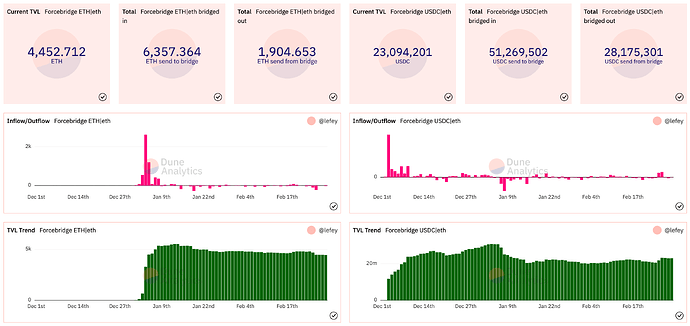 数据方面,截至本刊发布,通过 ForceBridge 跨过来锁定的资产 TVL 分别是: