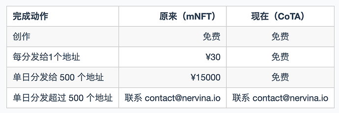 3 月 1 日,秘宝已部署新版智能合约 CoTA,发行费用大幅下降。 新创作的藏品可享受免费分发优惠(日限额500)。需要注意的是,在此之前创建的藏品仍然需要消耗点数。如有大批量发行需求,可与秘宝团队联系 [email protected] 。