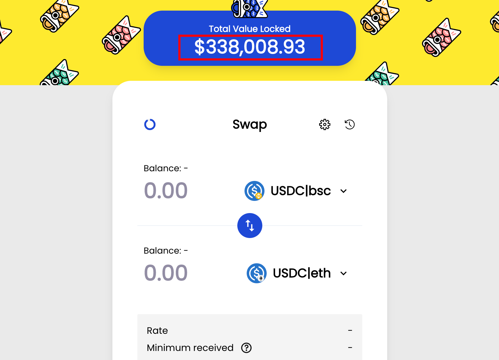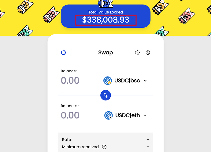 StableKOI 上锁定了 $338,008,93 的资产。来自以太坊、BSC的稳定币、BTC,可以在其上进行相互兑换。