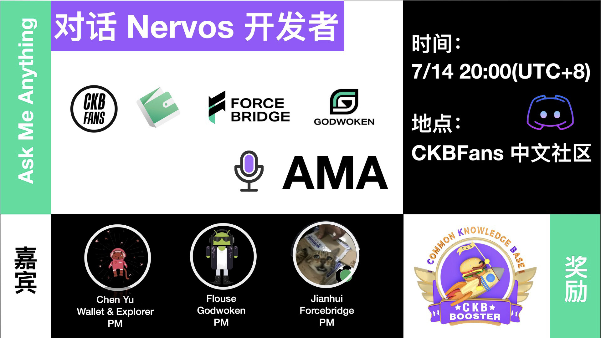 回看 对话 Nervos 开发者文字版 AMA : https://mp.weixin.qq.com/s/b5SG4xy_60MCiiLDjd-UQQ