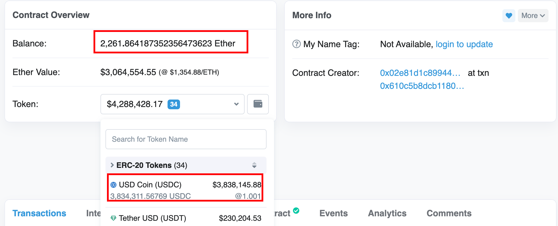 从以太坊跨过来的 ETH 数量为 2,261 枚,从以太坊跨过来的 USDC 为 3,834,311枚。