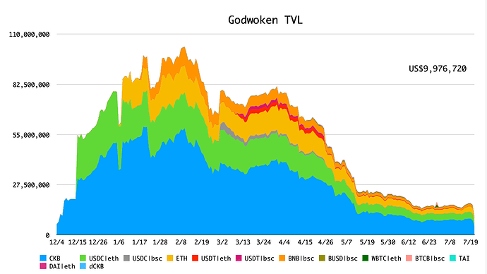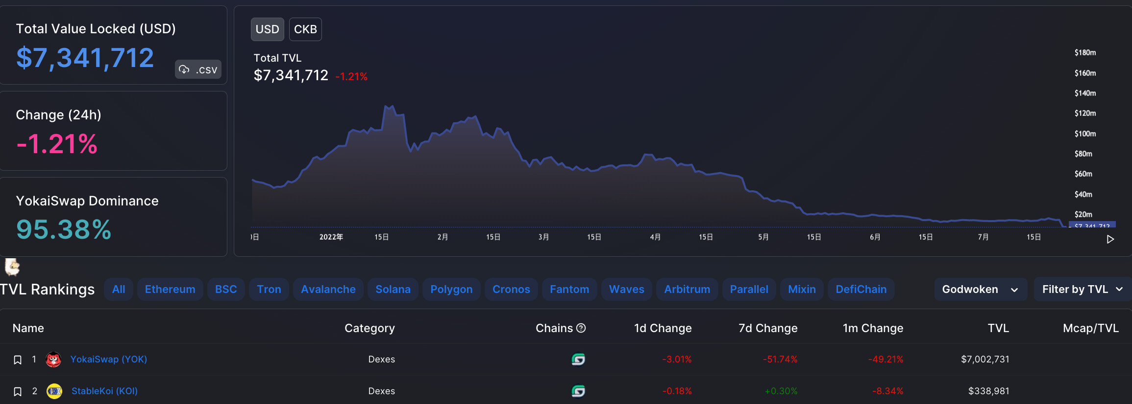 Godwoken 上的更多数据, 可以通过以下链接查看: https://defillama.com/chain/Godwoken 。