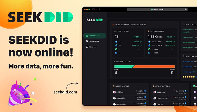 支持多种数据查询和数据看板功能,并支持多种颜色主题和中英双语。更全面的数据、更丰富的玩法,正等待一一揭晓。快来体验吧:SeekDID - Seek a DID for your web3 life