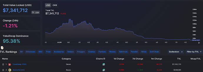 StableKOI 上锁定了 $339,030 的资产。来自以太坊、BSC的稳定币、BTC,可以在其上进行相互兑换。