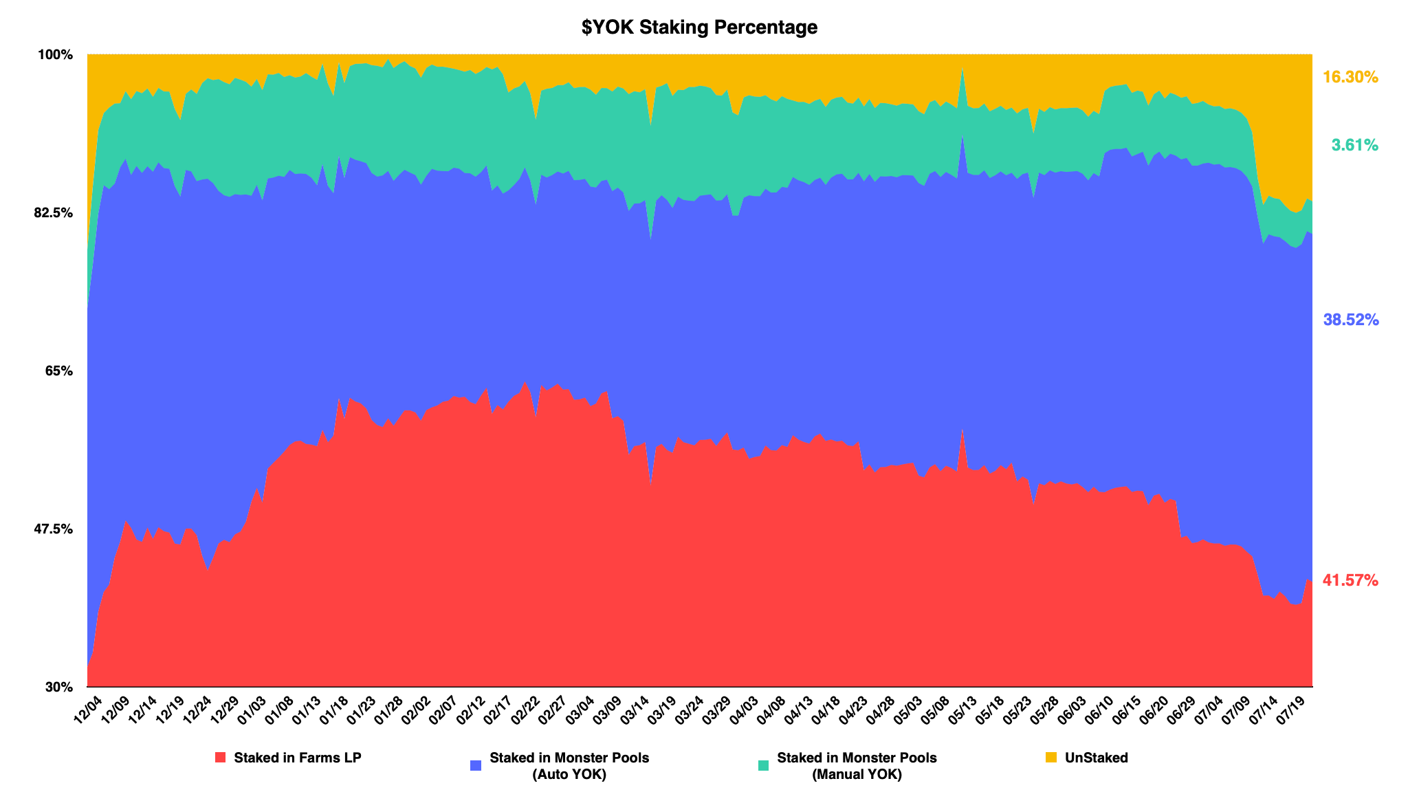 受目前 YokaiSwap Godwoken v1 迁移影响,目前大约有 16.30%的 YOK 处于未质押状态,上一期该值为 16.05%。