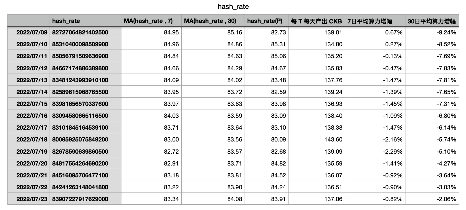 7 日平均算力: 83.34 P,( 上期该值为 84.03 P )