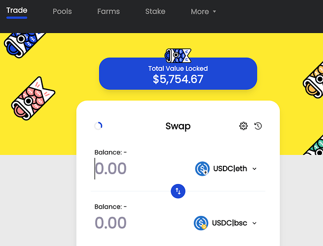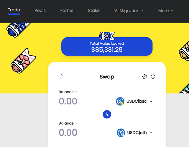 StableKOI 上 v0 和 v1 共锁定了 $91,085.96 的资产。来自以太坊、BSC的稳定币、BTC,可以在其上进行相互兑换。