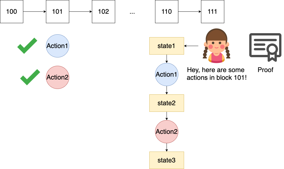 In a nutshell, we first submit the action to the chain, you can choose to write it to your cell’s output_data. Note that at this point the action does not take effect, it is just a record. Then, after waiting for a specific block height, you prove to the contract that you have previously submitted these actions on the blockchain and ask it to execute them in order.