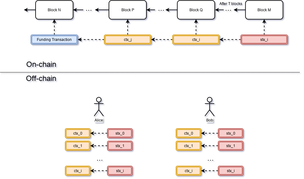- Alice and Bob exchange signatures of stx_0 and ctx_0.