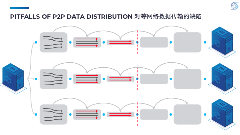 现实的网络问题就是,当你要广播 30M 区块的时候,就需要 20 分钟去广播和同步区块信息。这就关系到对等网络数据传输的缺陷了。