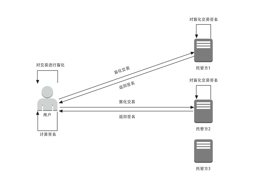 - 托管方响应用户的签名请求,将盲化交易签名后发送给用户;