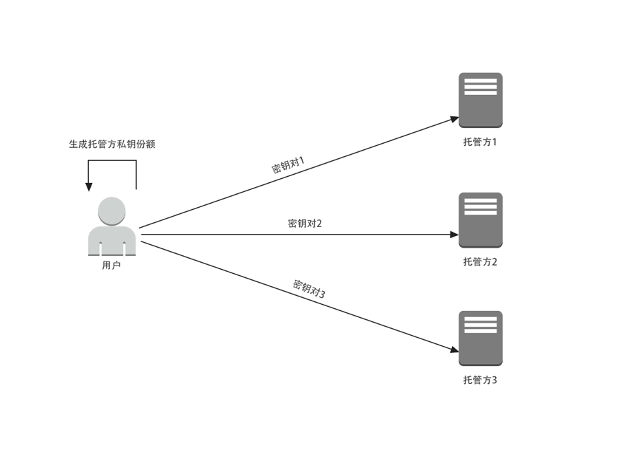 - 用户为多个资产托管方生成私钥份额,并通过秘密的方式发送给对应的托管方;