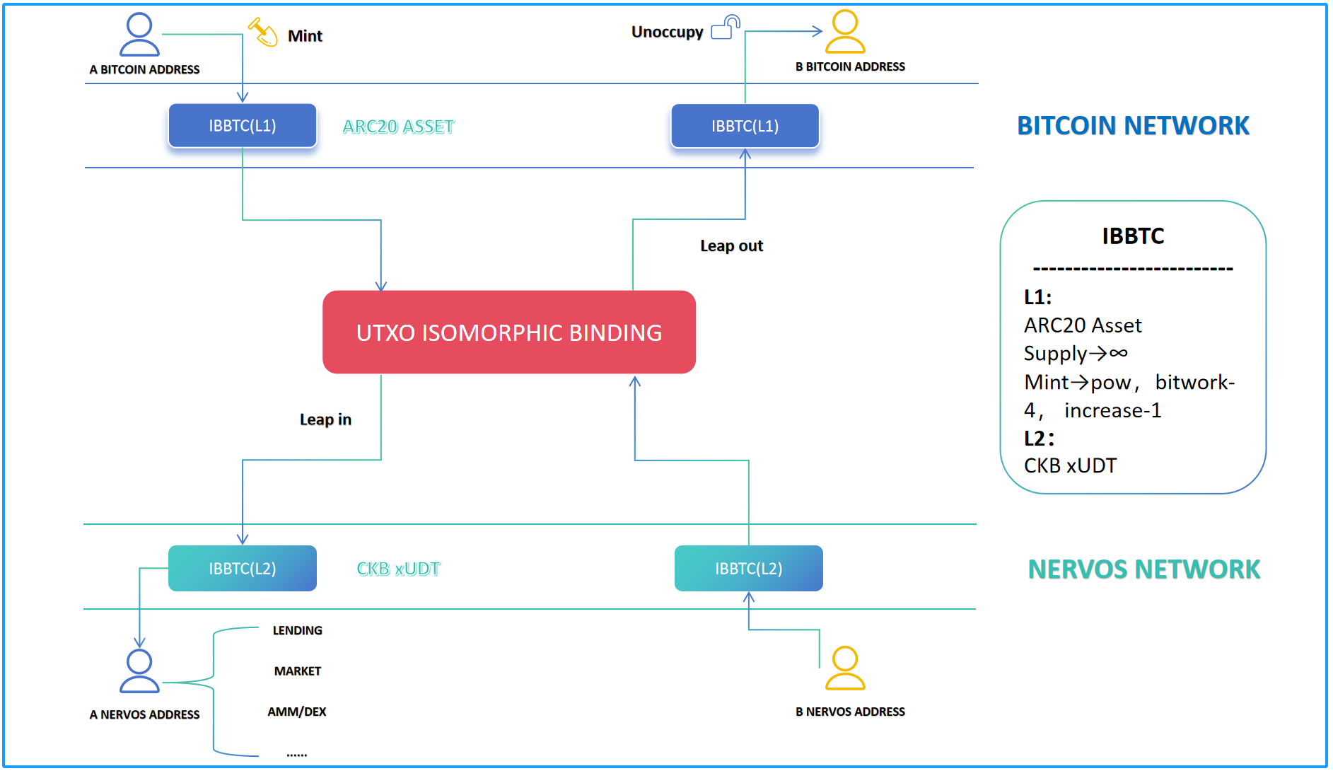 我们可以创建一个含聪量很高的Arc20资产:IBBTC(Isomorphic Binding Bitcoin) ,其可以通过低难度pow方式铸造,铸造的资产可以通过“同构绑定”技术同构到二层,同构后的资产因为映射了一层含聪的IBBTC,因此可以在二层等同于同样聪价值的BTC,这样就实现了BTC的同构映射。