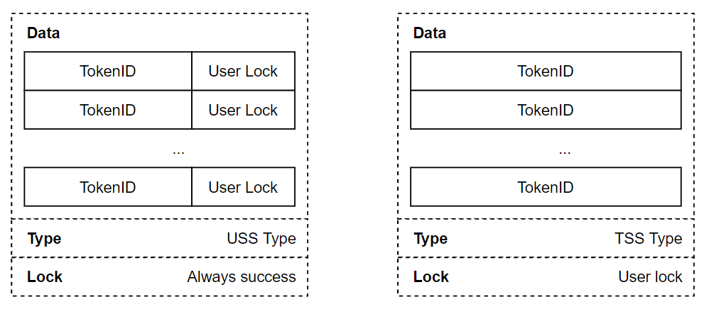 There are generally two schemes to store data into SMT for users, User-shared SMT (USS) and Token-shared SMT (TSS). USS uses a single cell for different users, so it requires aggregator to combine users’ transactions. TSS needs a seperated cell for individual user, and it manages all kinds of tokens for the specific user. Compact UDT protocol adopts the USS mode, it’s more space efficient, also more complicated on implementation. As a comparison, TSS mode is simple yet powerful.