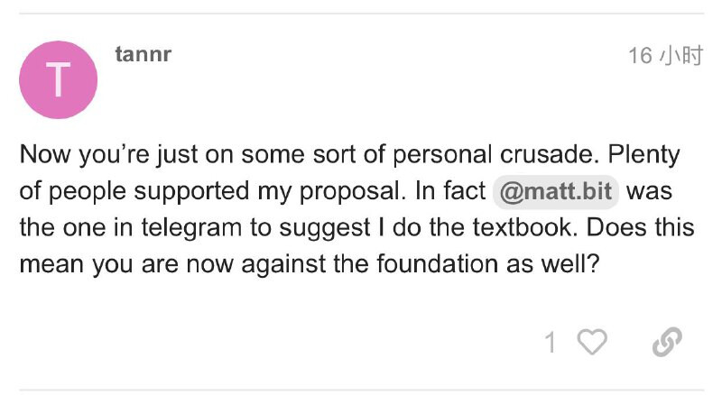 Incorrect assessment of the situation yet again. The concern was that proposal wasn’t aligned with the foundation so Tanner made a rhetorical point that it was in favor with Matt, so the concerned person was going against their own logic.