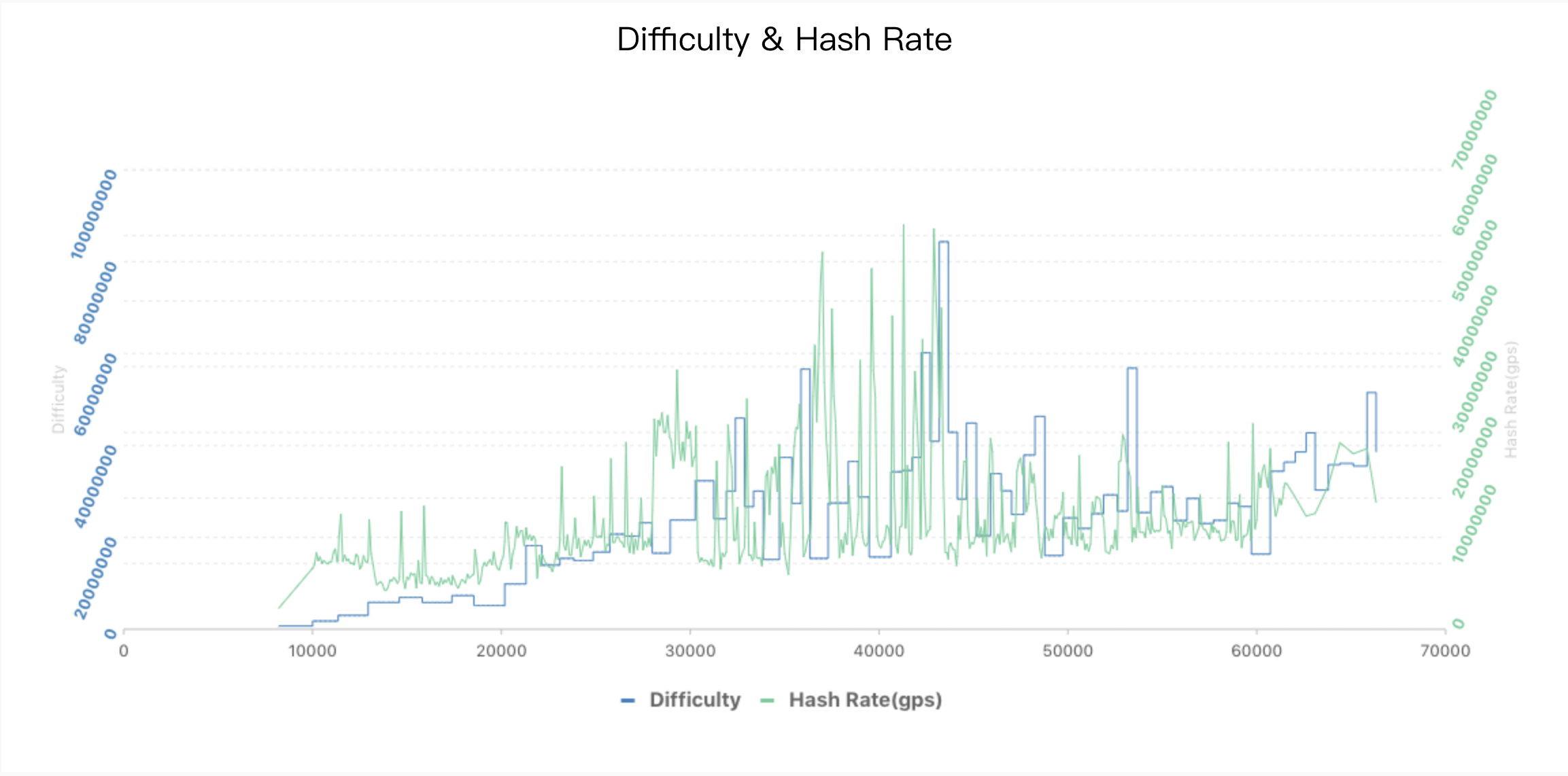 注:本数据是依据 Block Number 的 Difficulty 和 Hash Rate 的数据变化