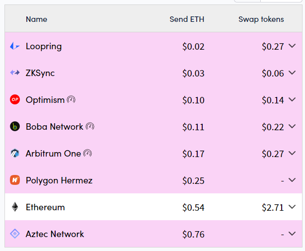It’s important to look at the 'Send ETH" function, as this is pretty standard across all chains. On Godwoken V1, this is analogous to sending CKB (pCKB on L2). (Please note Metis is not a true rollup).