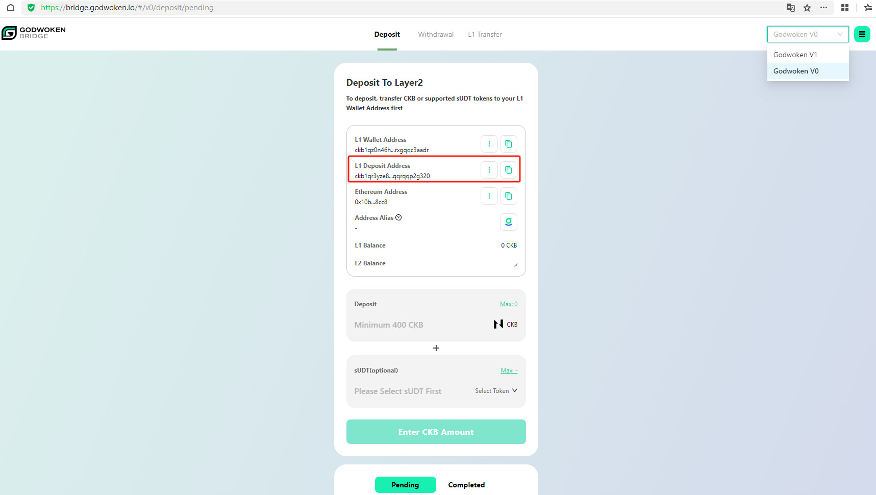 Godwoken Bridge V0V1入金地址跟前面的又不一样了,不统一地址入口真的好混乱,建议地址归类统一,而不是一个项目一个地址,项目方跑路关闭,该项目对应地址下的资产都无法找回。