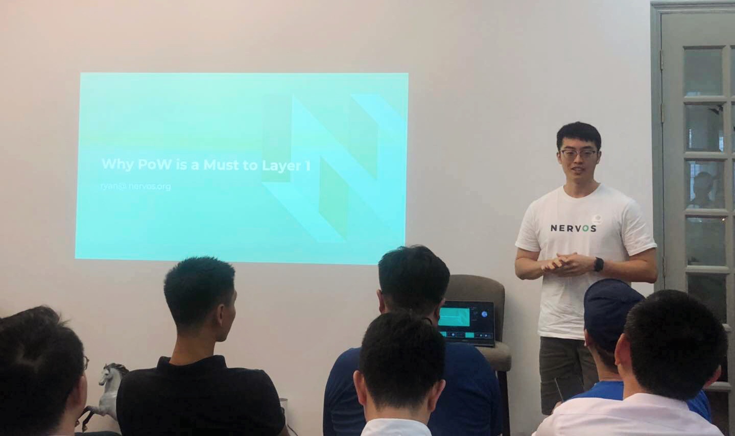 - 2019 年 6 月 21 日,Nervos 社区经理 Ryan 在 Hotbit、Jrr Crypto、QBao Network 联合主办的「Staking 热浪来袭」私享会中,分享了「为什么区块链的底层基础设施一定要是 PoW」。