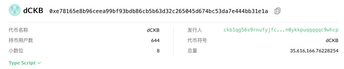 数据来源:https://explorer.nervos.org/sudt/0xe78165e8b96ceea99bf93bdb86cb5b63d32c265045d674bc53da7e444bb31e1a
