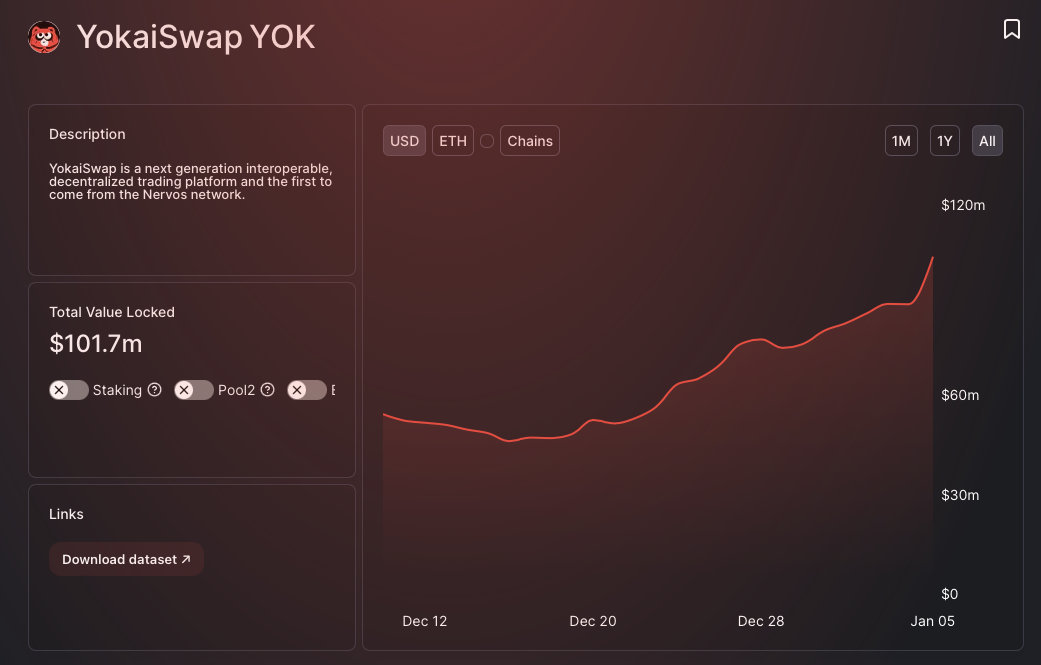 数据来源:https://defillama.com/protocol/yokaiswap/all/USD