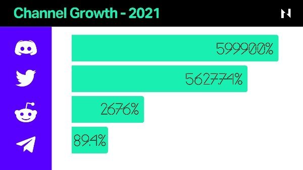 2021 年,Nervos 的 Discord 社区、Twitter、Reddit 社区、电报群的用户增长情况如下: