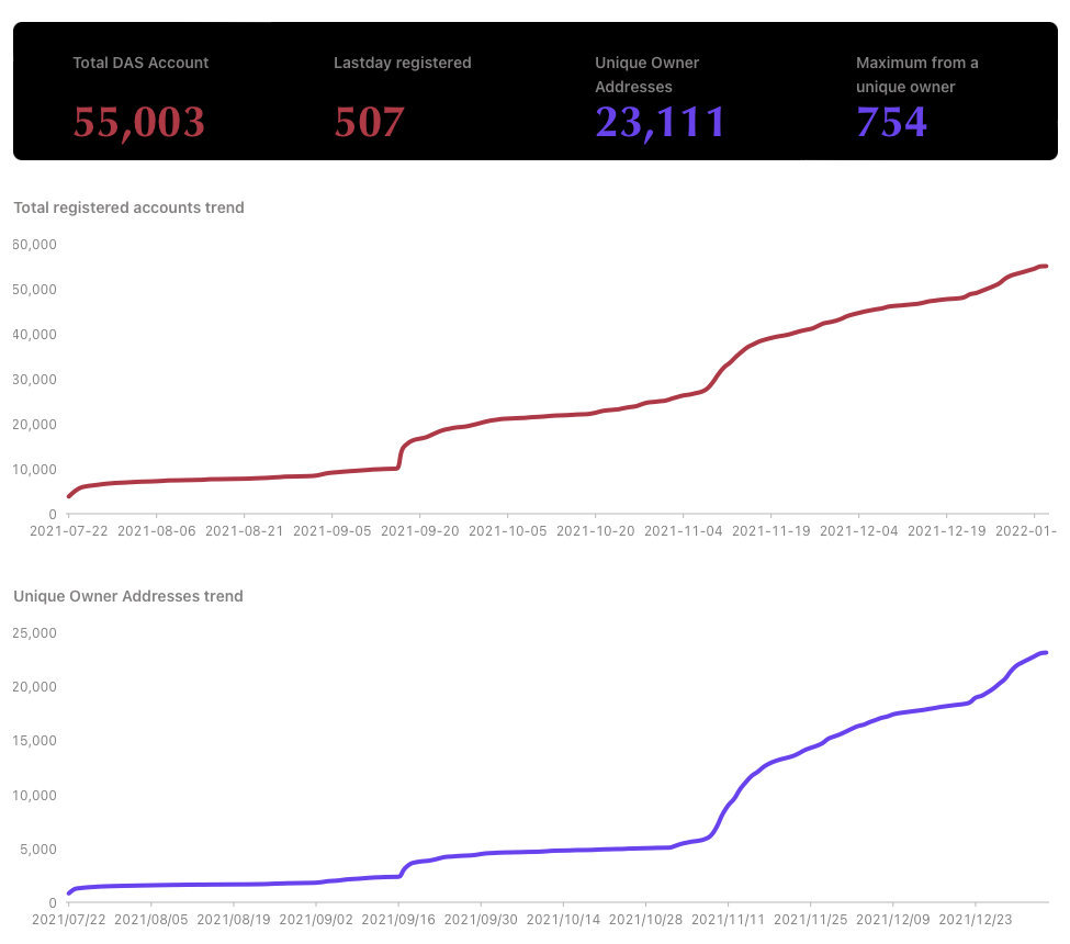 截至目前,DAS 的全网注册账户数突破 5.5 万,独立 Owner 数量超过 2.3 万个: