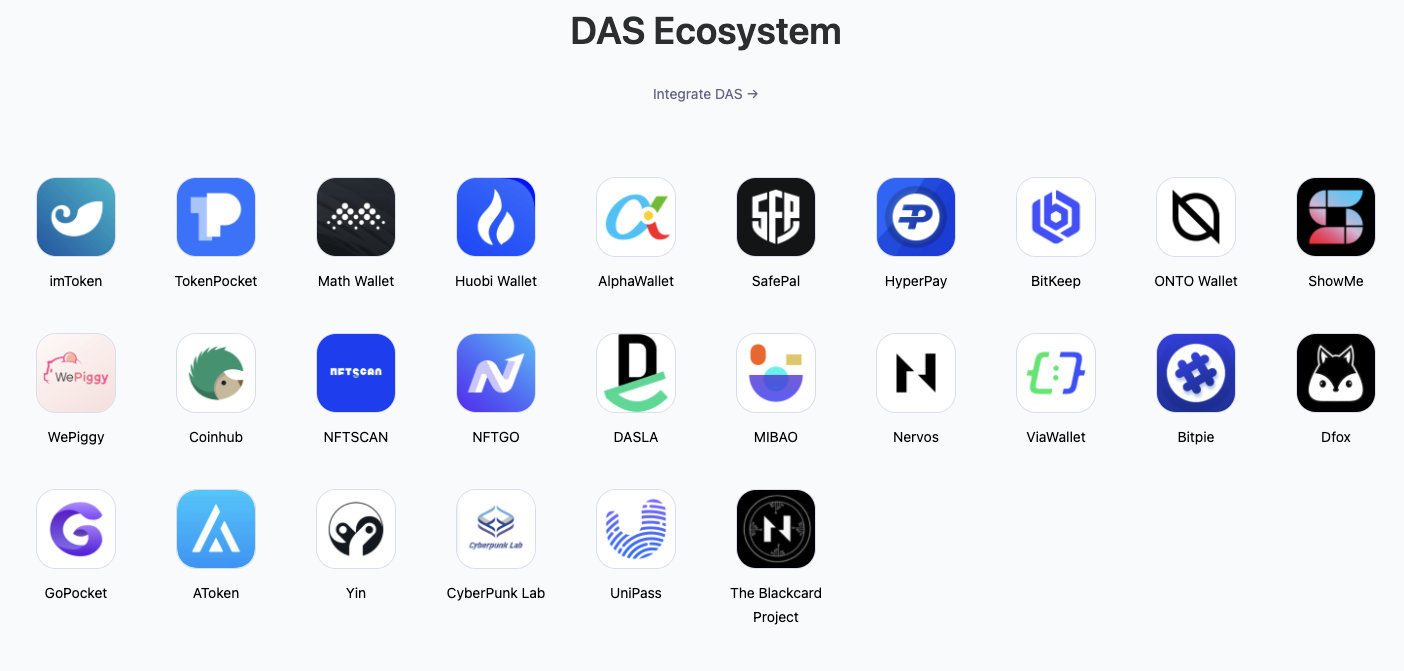 目前,已经有二十几款钱包集成了 DAS,支持通过 DAS 账户来转账: