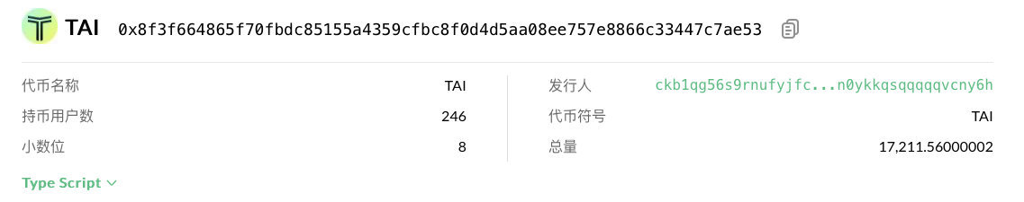 数据来源:https://explorer.nervos.org/sudt/0x8f3f664865f70fbdc85155a4359cfbc8f0d4d5aa08ee757e8866c33447c7ae53