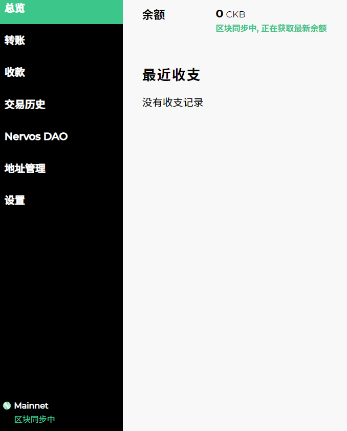 - 总览:查看钱包地址内余额,链状态和最近收支
