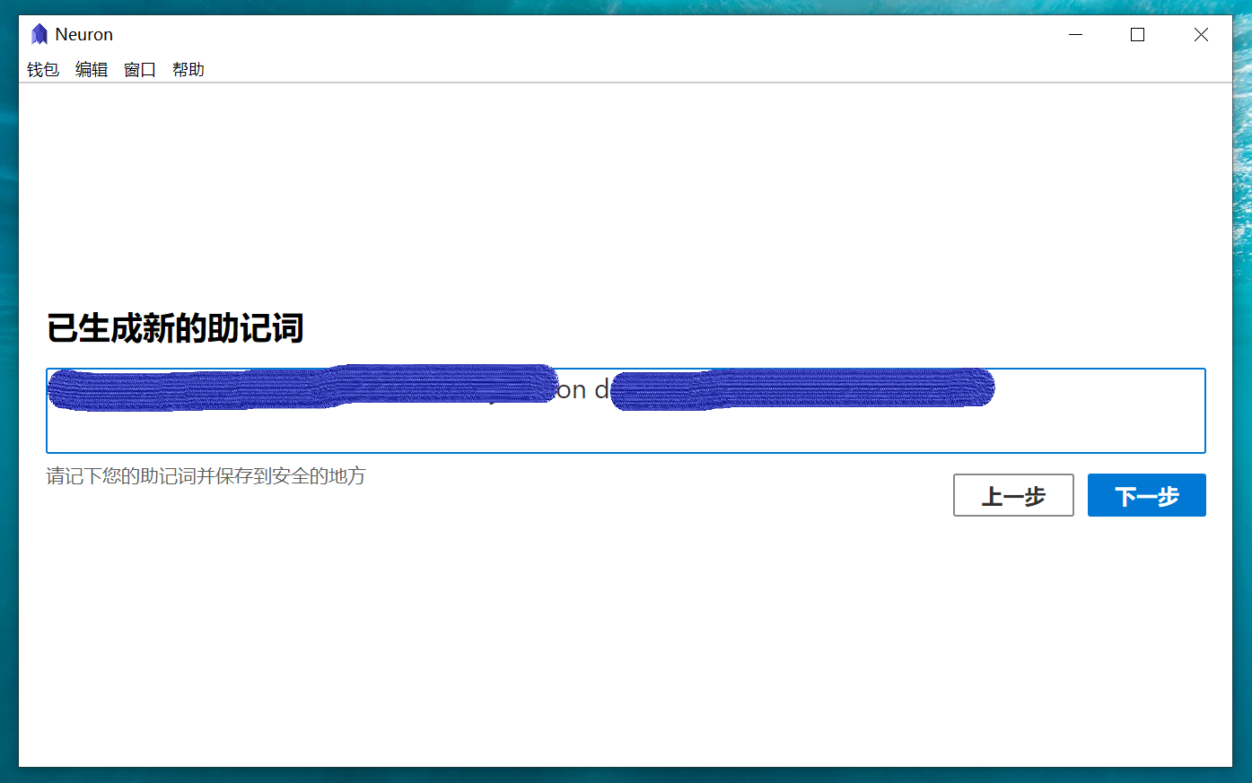 - 您将获得一个由 12 个单词组成的助记词,请务必谨慎地保存助记词!