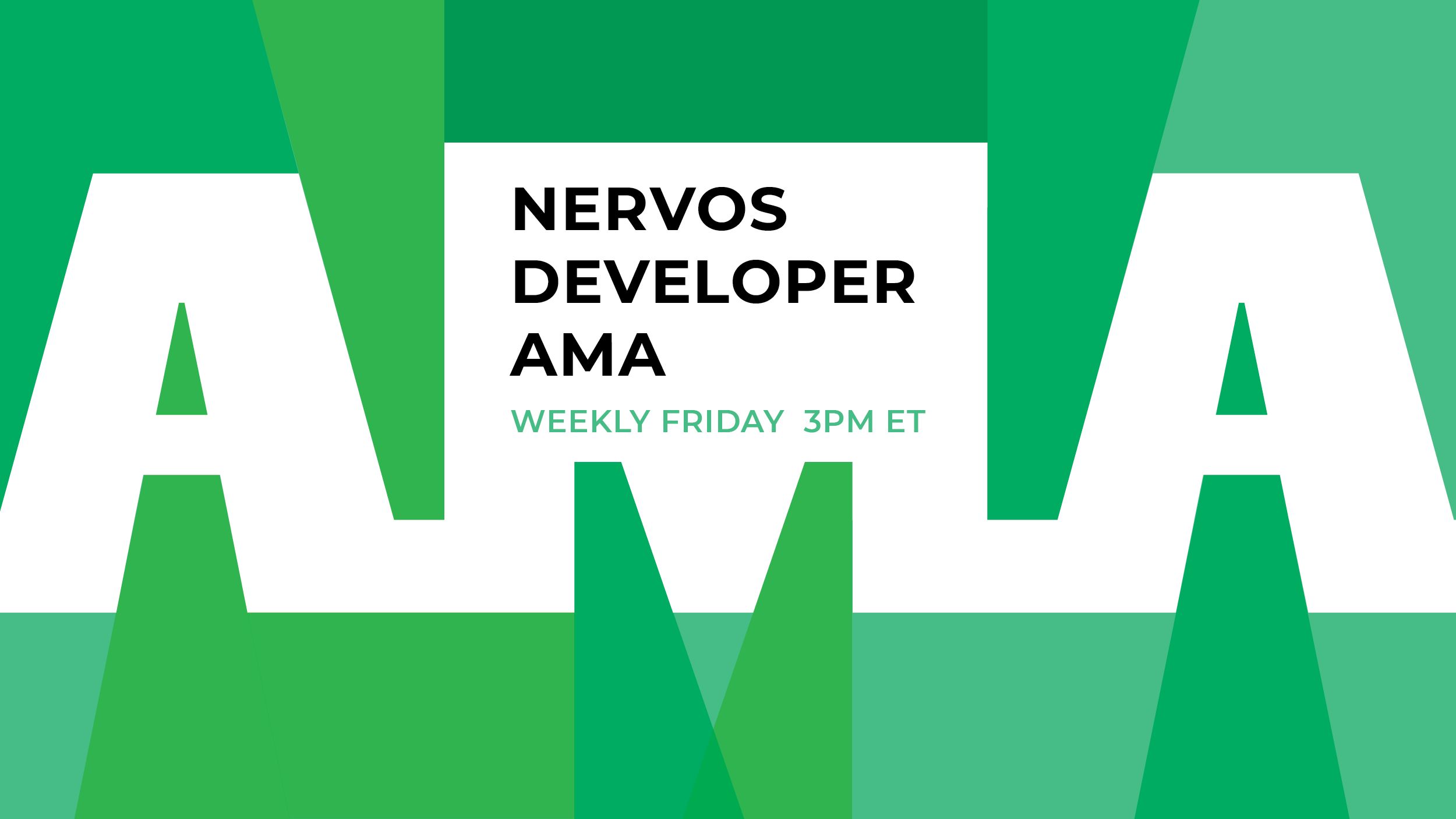 - Every Friday 3 PM EST there will be a developer AMA on CKB Dev Telegram channel. Nervos Dev Tannr will host it and answer community questions that are submitted throughout the week. Catch the first AMA recap: CKB Developer AMA #1 with Tannr.