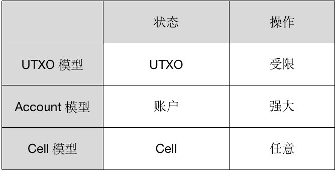 更进一步,Data 是没有任何内部结构的,也就是这个空间中可存放任意数据。而且 Cell 支持任意的操作规则,包括读取自身 Cell 中保存的状态,以及引用和读取其它 Cell 中保存的状态等。通过 Cell 模型用户可以给一个 Cell 赋予任意状态并在此状态上进行任意操作。因此如果基于 CKB 定义加密资产,实现和操作加密资产的方式更加多样,拓展了加密资产的应用场景。