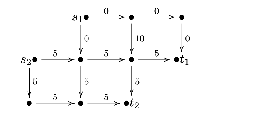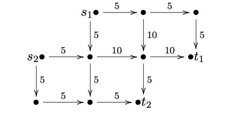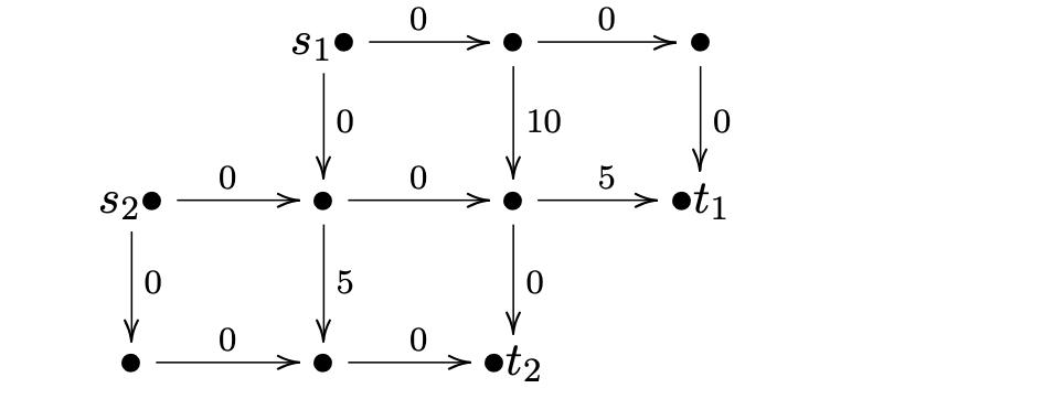 下图中, s_1 到 t_1 的最大流为 10 单位。