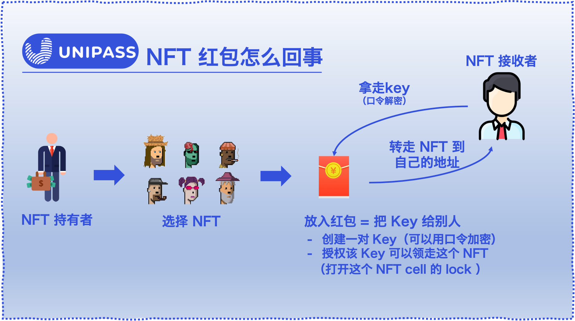 好奇的你如果你在使用 Unipass 的红包功能时,你可能会觉得神奇,为什么我们可以轻易的发出 CKB 链上的 NFT 红包呢?