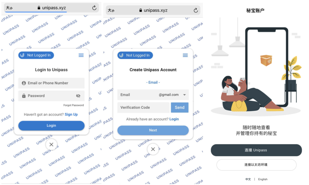 在 Unipass 中,任意的签名验证都可以在不失去安全性的情况下,让用户方便的使用各种方式创建区块链账户。这点不但考验着钱包的实现能力,也考验着公链的兼容能力,这点在 Unipass 上你可以看到,记下助记词这种步骤不需存在,取而代之的是互联网既有的签名验证工具生成的公私钥 。 -